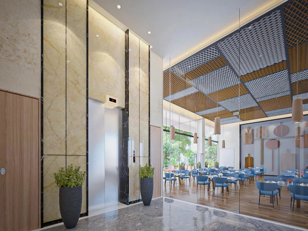 Patterned ceilings and clean lines create strong visual identity.