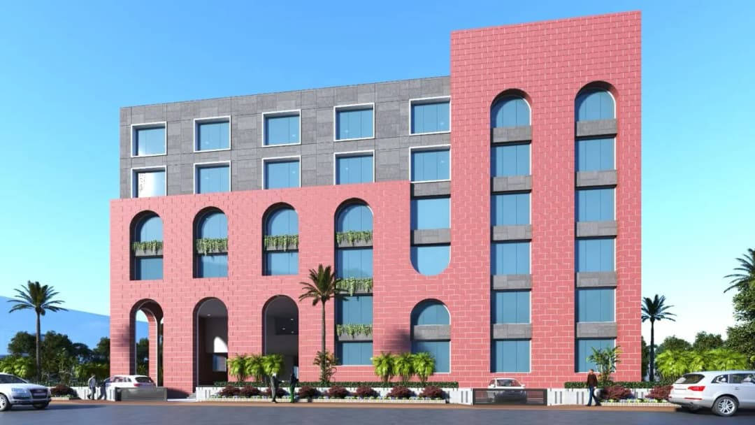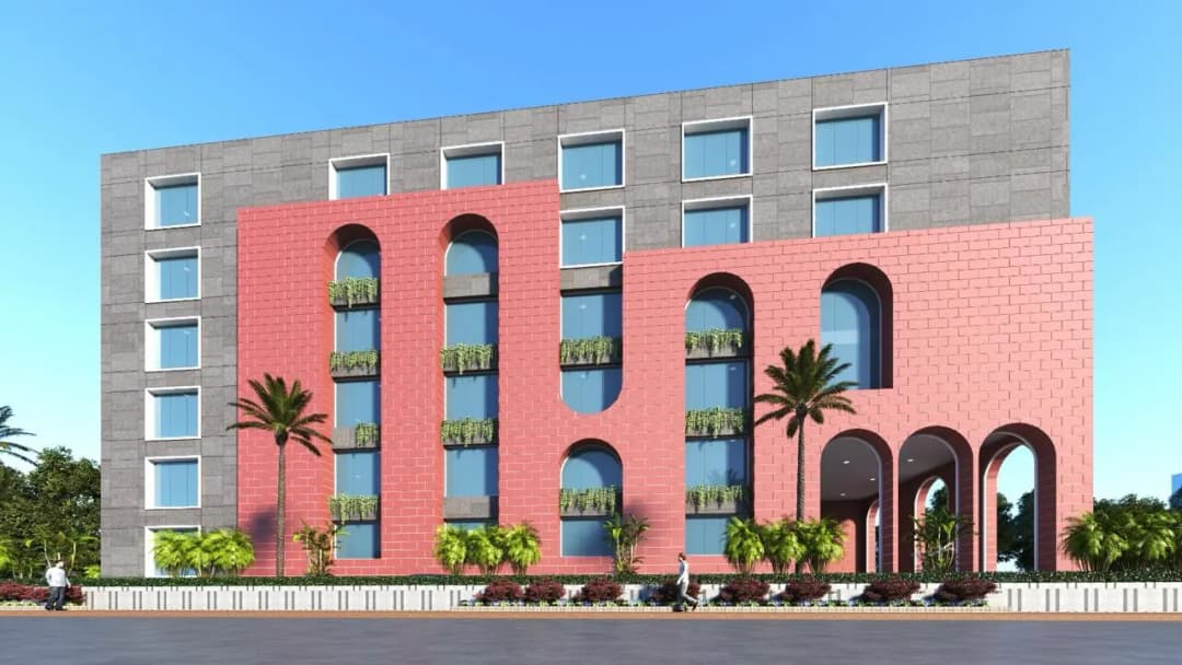 Dish Kendra School is designed as a contemporary educational campus that balances functionality with strong architectural expression.