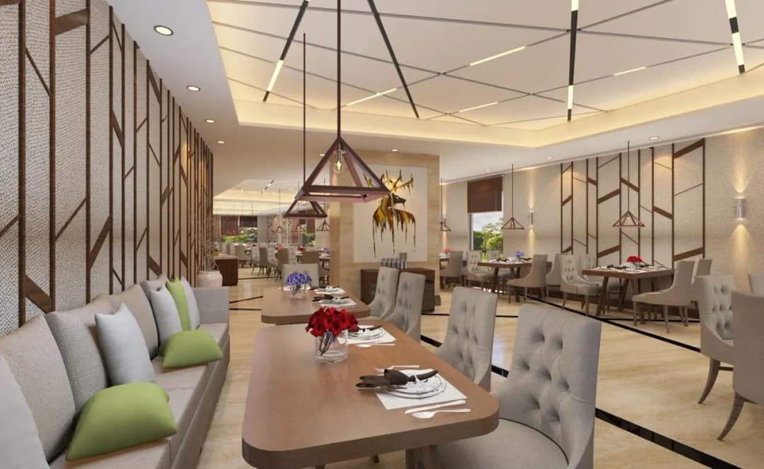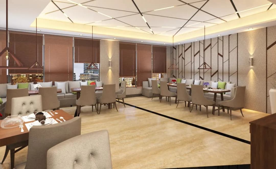 The restaurant is designed to create a welcoming and elegant dining atmosphere that caters to both quick visitors and long-stay guests.